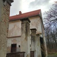 Pałac w Milinie, od strony zachodniej, czyli od ogrodu. Na zdjęciu widać brak filarów, które zostały zdemontowane na zlecenie Urzędu Gminy Mietków (właściciela budynku). Na skutek degradacji zaprawy wapiennej filary zaczęły tracić stabilność. Remont wykonano w czerwcu 2017 roku.