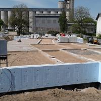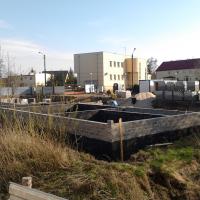- Zdjęcie z początku budowy nowego budynku urzędu Gminy Mietków, zrobione 9 kwietnia 2012 roku. Widoczny wykop i wylane ławy fundamentowe i przygotowanie do murowania pierwszej warstwy ścian poniżej poziomu gruntu. W tle widoczne elewatory zbożowe.
