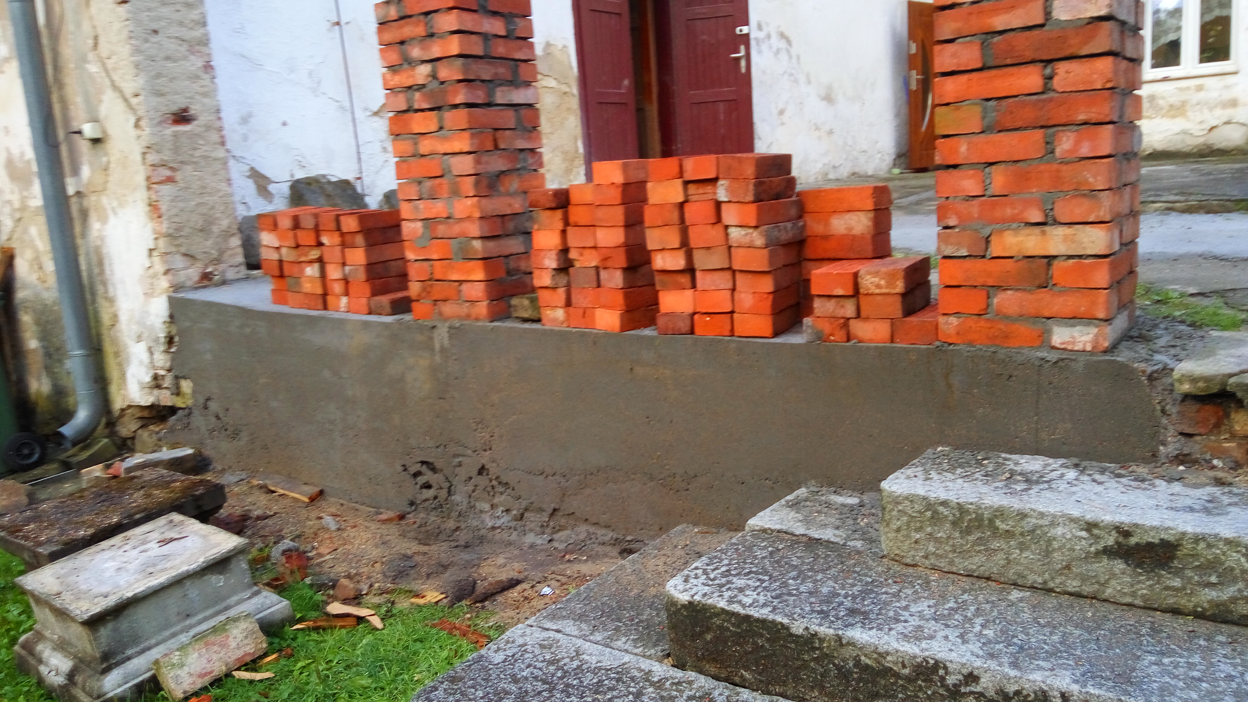Fundament pod filarami został zastąpiony z tradycyjnych cegieł na wylewkę cementową, (niezalecaną w takim miejscu, ale szybszą i tańszą). - Identyfikator
