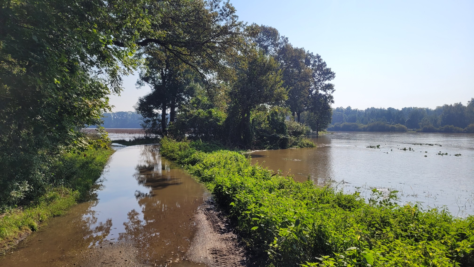 - Zdjęcie drogi z Milina do Okulic, zaraz za mostem na Bystrzycy wykonane 18 września 2024 roku. W wielu miejscach Bystrzyca wystąpiła z brzegów i zalała okoliczne lasy, łąki i pola.
