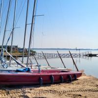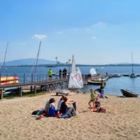 - Zdjęcie slipu do wodowania łodzi oraz plaży w Borzygniewie w lutym 2011 roku w czasie budowy Ośrodka Sportów Wodnych. Po lewej stronie w tle widać do z drewnianych bali oraz budowane domy, a w centrum budynek obecnej sali konferencyjnej Ośrodka.